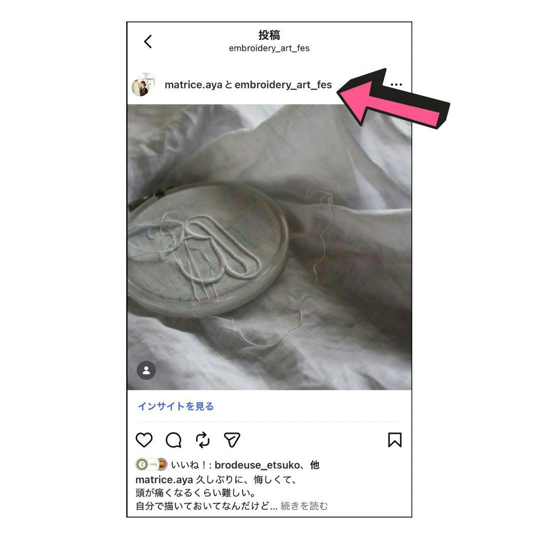 刺繍フェスのインスタでは共同投稿をおすすめしています。